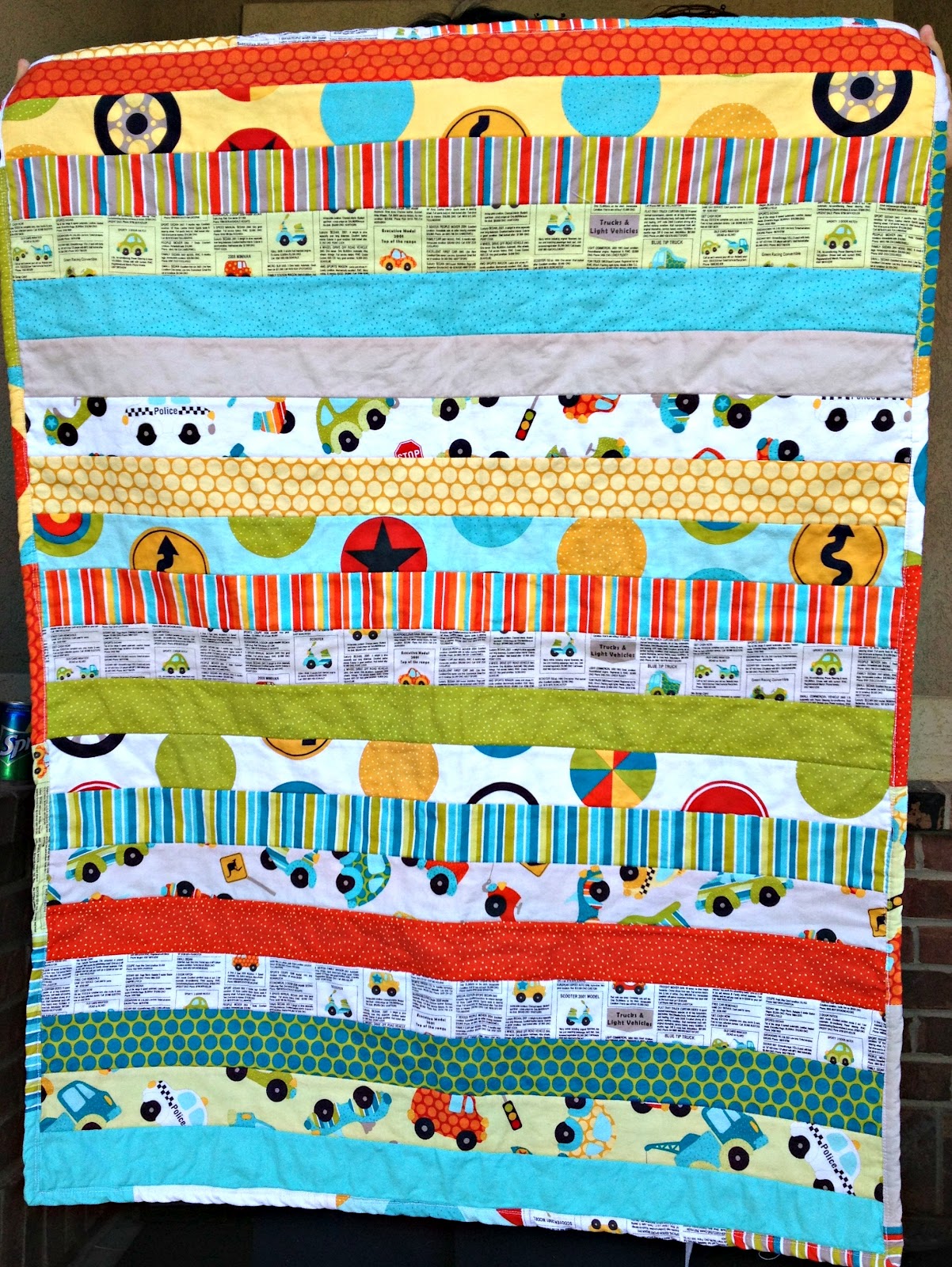 This quilt is for my darling hairstylist who had a little boy. When I went to Riley Blake I couldn't resist this cute fabric.
